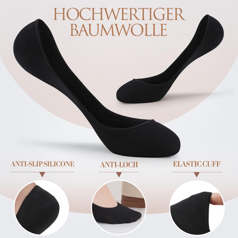 - Invisible non-slip protection: the trainer socks women are in a low-cut design and equipped with soft silicone. This increases friction when walking, prevents the women's socks from slipping down and at the same time ensures an unobtrusively beautiful appearance.