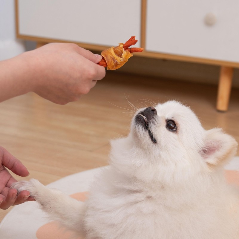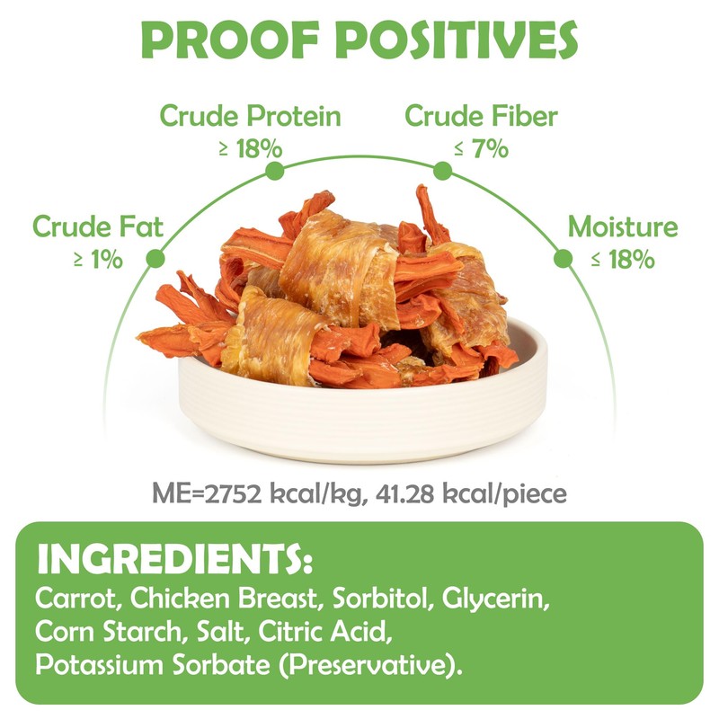 - [Healthy and Natural] Chicken breast wrapped around real slices of dried carrot. Carrots are good for dogs' eyes. Healthy and Natural. Low fat and nutritious.
