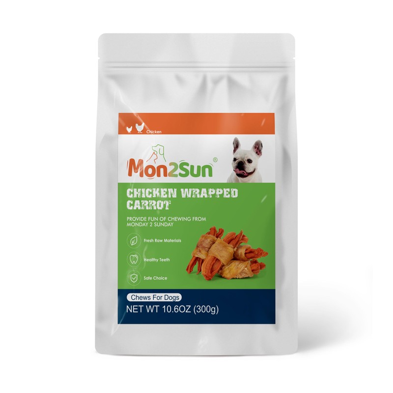 MON2SUN Rawhide Free Dog Treats, Chicken Wrapped Carrot Snacks, Healthy and Natural Chews for Small Dogs, 10.6oz (15 Count - Pack of 1)
