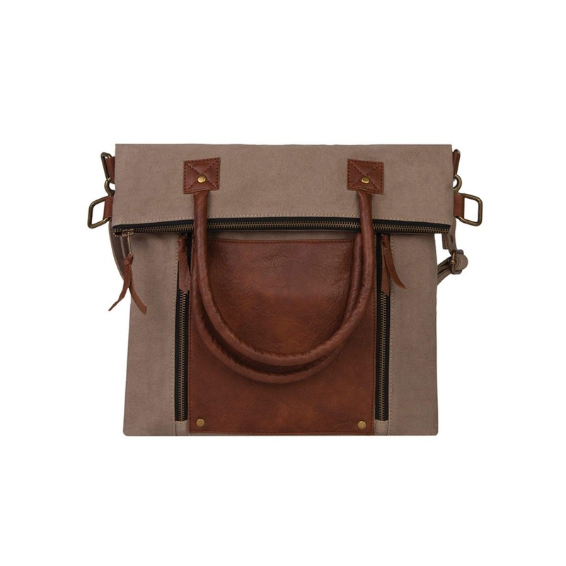 Mona B. Ash Fold-Over and Intermix Convertible Upcycled Canvas Tote and Crossbody Bag with Vegan Leather Trim (Fold-Over-Stone)