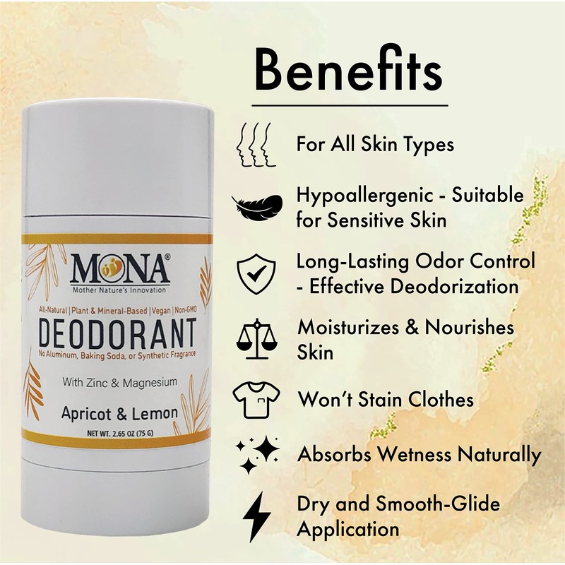 MONA BRANDS | Aluminum Free All Natural Deodorant for Women & Men | Baking Soda & Synthetic Fragrance Free, Hypoallergenic, 100% Natural & Vegan Deodorant with Magnesium & Zinc Minerals | Womens and Mens Natural Deodorant for Sensitive Skin | Non-greasy,