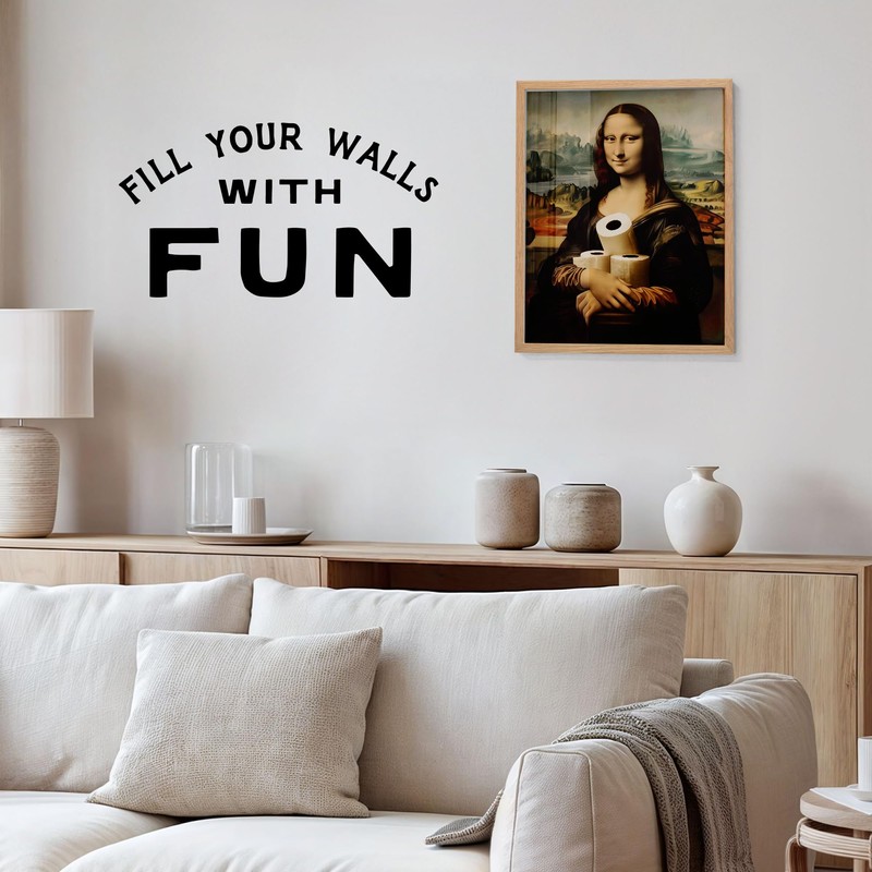 Mona Lisa Toilet Paper Parody - LARGE 11x14 Funny Bathroom Wall Art - Renaissance Humor Pop Art Decor for Powder Room, Guest Bathroom - Unique Funny Gift for Men Women Unframed