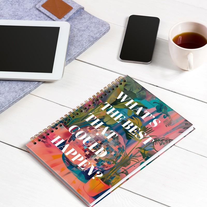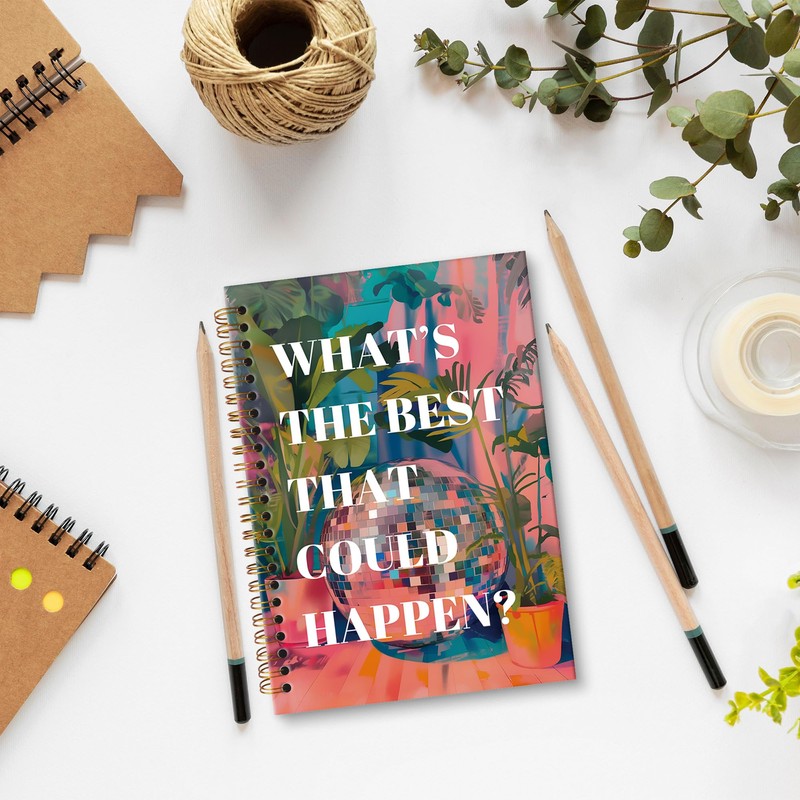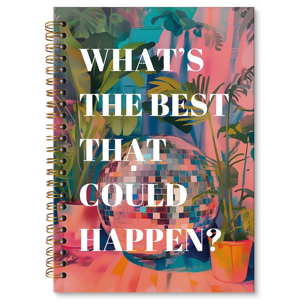 MONALET Trendy Inspirational A5 Spiral Notebook Gifts, What's the Best That Could Happen Hardcover Daily Journal Notebooks Lined for School Work Office Note Taking, Preppy Composition Notebook 5.5x8.3