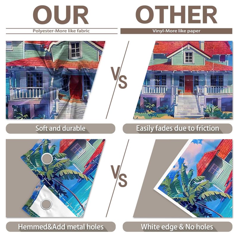 Use Hawaii House Backdrop as a party decoration for birthdays, baby showers, bridal showers, retirement parties, holidays, or graduations. It also can be used as home accent — hang it as a tapestry, use it as wallpaper, or drape it over a table.