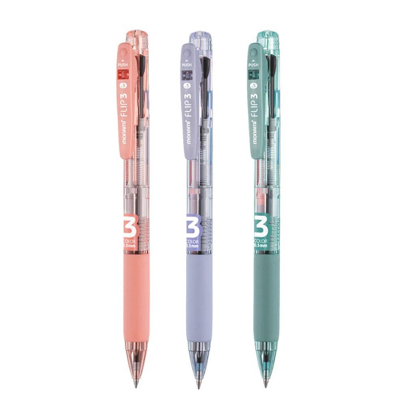 Monami Flip3 0.5mm 3 colors ballpoint pen Ink Black, Blue Red