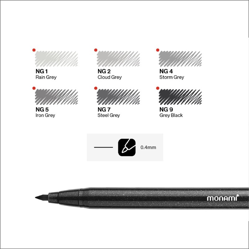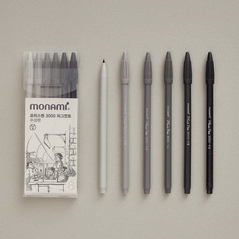 MONAMI Plus Pen 3000 Pigment 6 Set Felt Tip Pens, Fine Point (0.4mm), Coloring/Drawing/Journaling, Assorted Colors