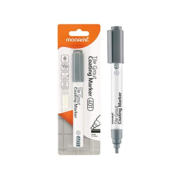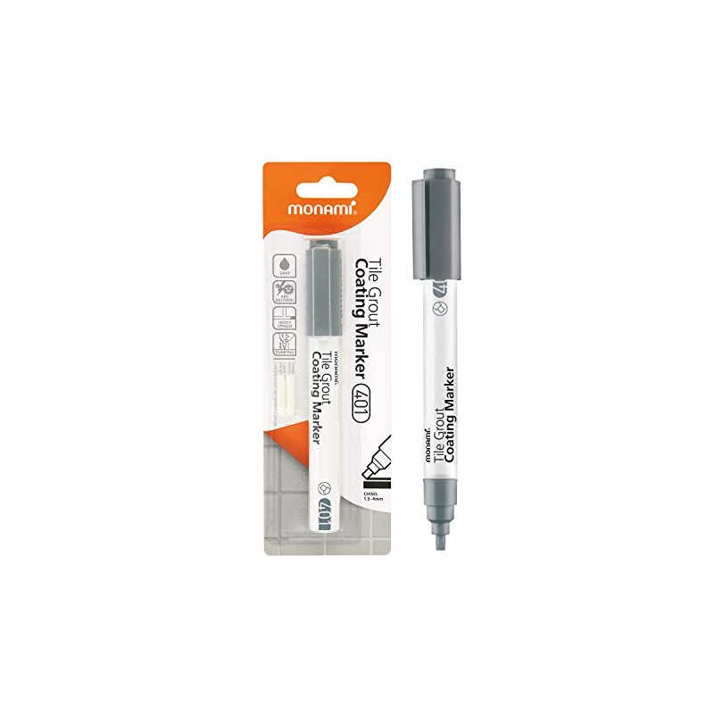MONAMI Tile Grout Coating Marker 401, Chisel Tip (1.5~4mm), Repair Marker with Replaceable Nib Tips to Restore Grout Lines, Grey, 1 Marker + 2 Extra Tips