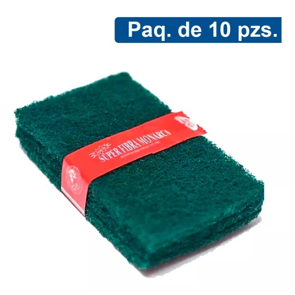 Kit de 10 pz de Fibra verde que no se deshace o apelmaza con el uso, limpia superficies no sensibles a rayaduras.