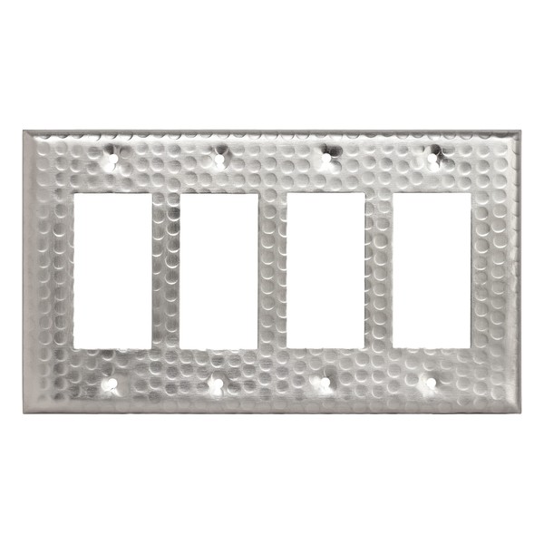 Monarch Abode Rocker Light Switch Cover Plate – 4-Gang Brushed Nickel Decorator Wall Plates, Hand Hammered Decorative Outlet Covers Wall Plates for Receptacle, GFCI Electric Outlet Cover, Pack of 1