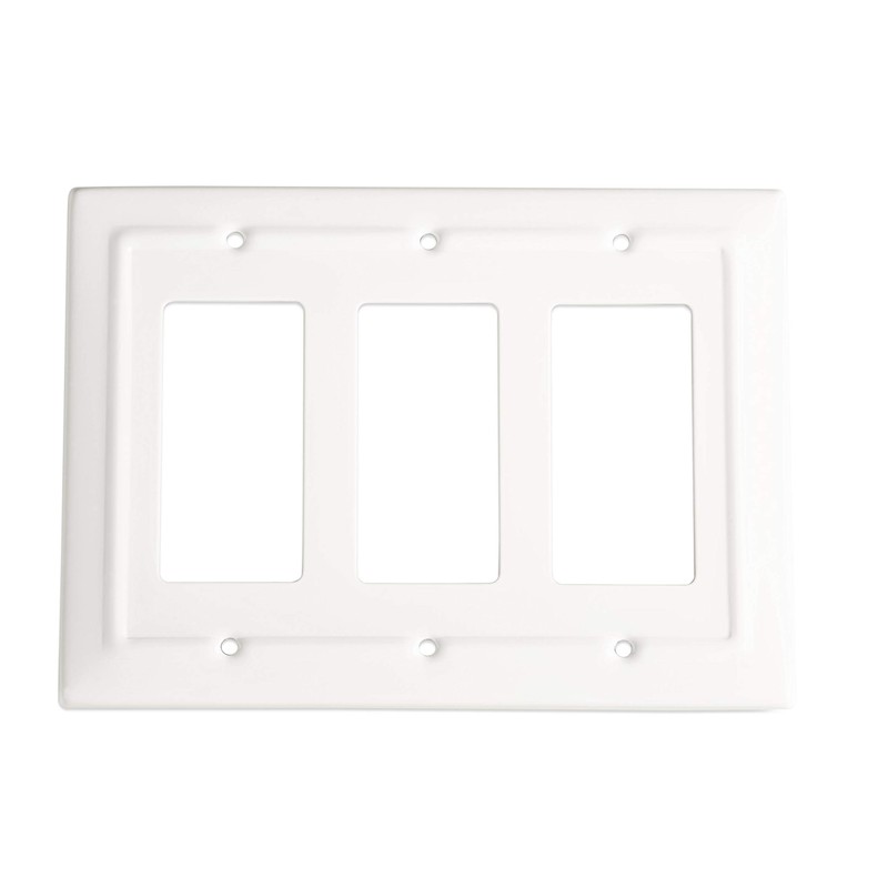 - Stylish and attractive: Experience a modern aesthetic as our stylish switch plates add a touch of refinement to any room. The surface of the 3 gang single decorator wall plate is architectural and finished with a powder coated classic white to provide added texture and elegance.