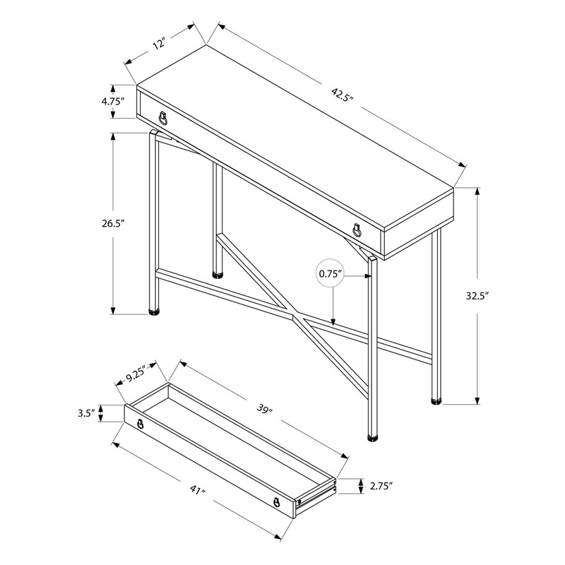 Monarch Specialties Console Sofa Accent Table, 42" L, Brown Reclaimed Wood-Look/Black Base