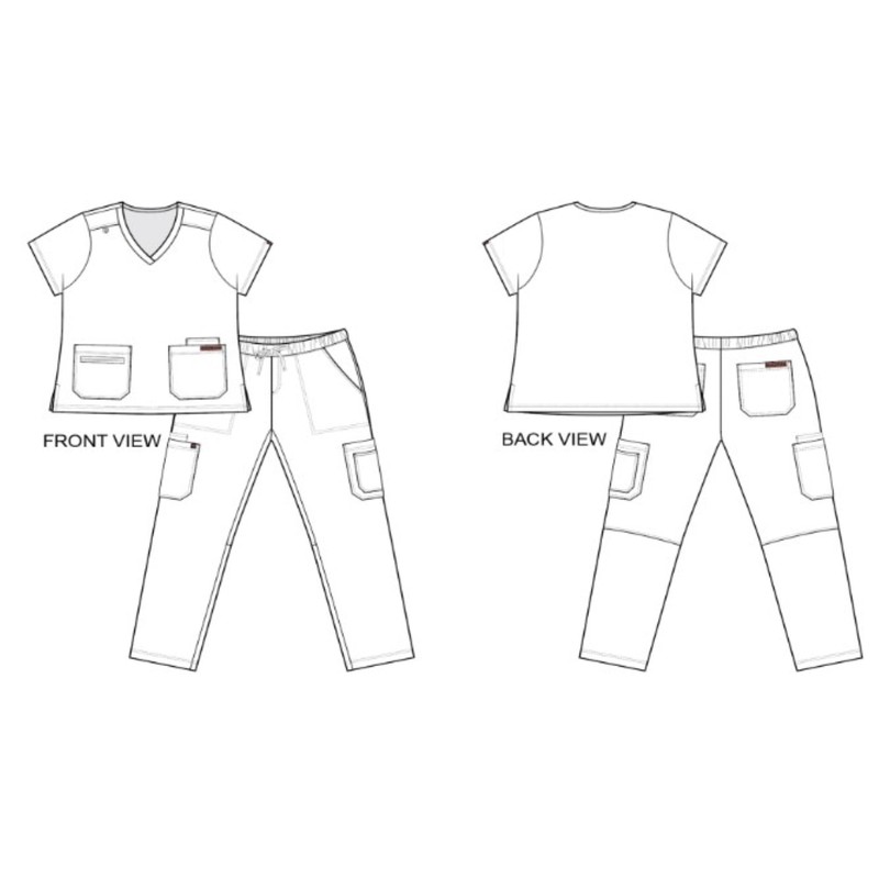 - LIGHTLY TAPERED CARGO SCRUB PANTS- 8 pockets and a drawstring fastened elastic waistband round out this versatile scrub pant.