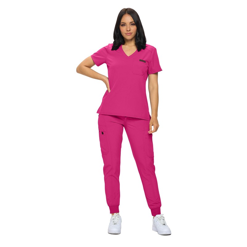 MONARCH UNIFORMS Stretchy Scrubs Women's Jogger Scrub Set In Regular and Petite Jogger Scrubs with Tuck-In Top for Women, Hot Pink, 3X-Large