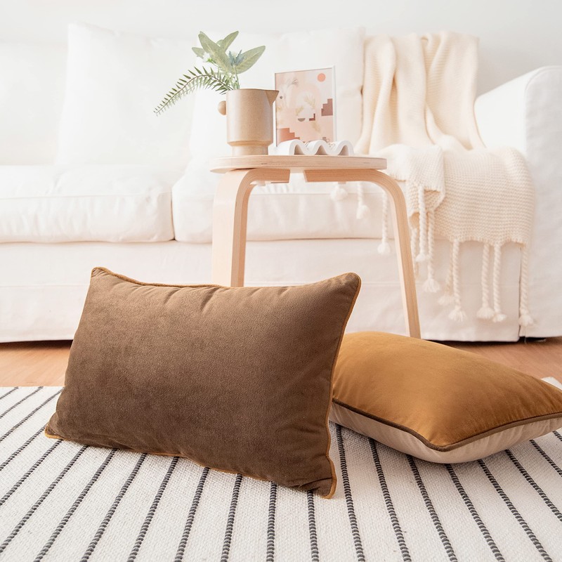 - SET OF 2: Includes 1 brown/beige velvet pillow + 1 caramel/brown velvet pillow