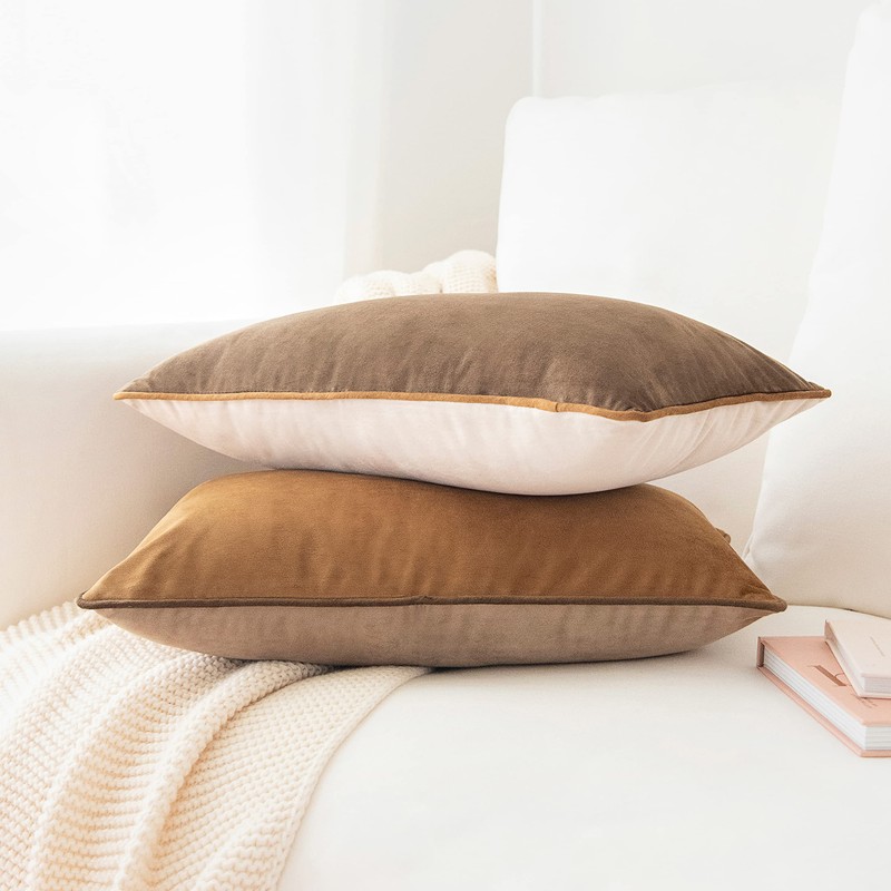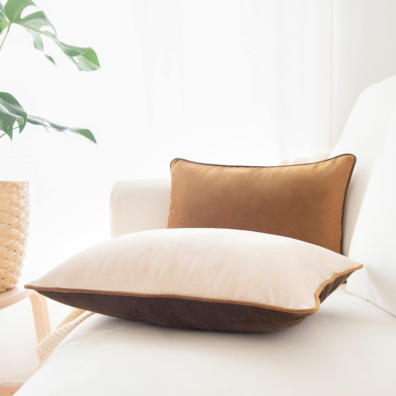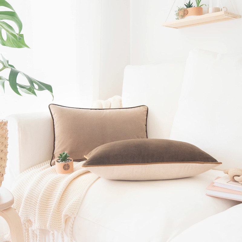 MONDAY MOOSE Decorative Throw Pillow Covers Cushion Cases, Set of 2 Soft Velvet Modern Double-Sided Designs, Mix and Match for Home Decor, Pillow Inserts Not Included (12x20 inch, Brown/Beige)