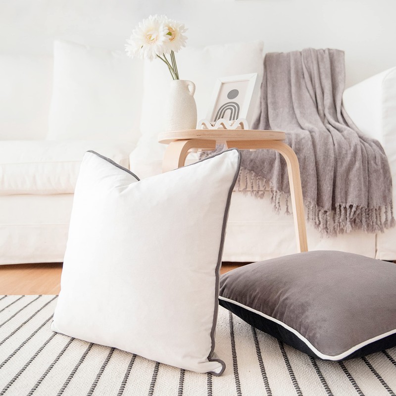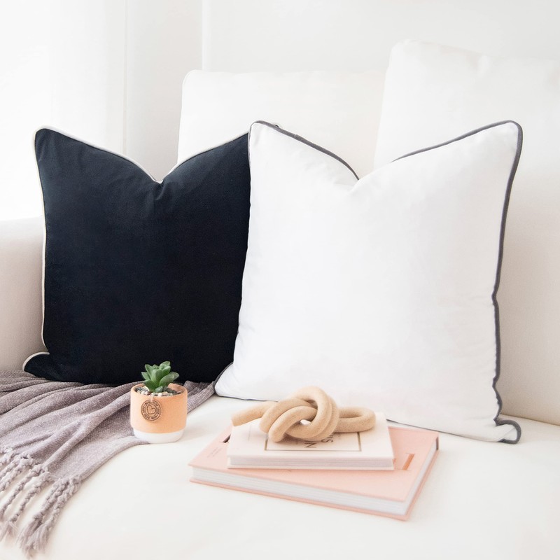 - SET OF 2: Includes 1 white/light gray velvet pillow + 1 dark gray/black velvet pillow