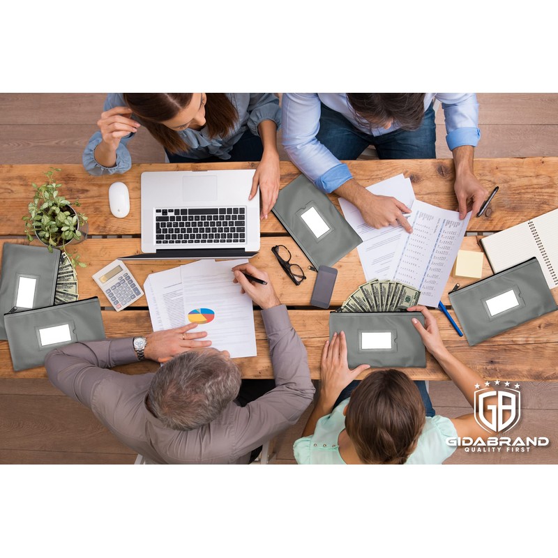 Money Bank Deposit Bag with Zipper | 11x6 inch | Grey | Durable Leatherette Money Cash Coin Check Wallet Pouch for Men & Women with Framed ID Window and Blank Card | by GIDABRAND (5)