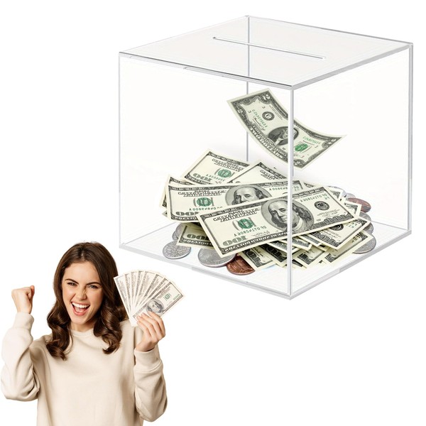 Money Box Not to Open, 12 x 12 x 12 cm Acrylic Transparent Money Box Notes Money Box for Adults and Children