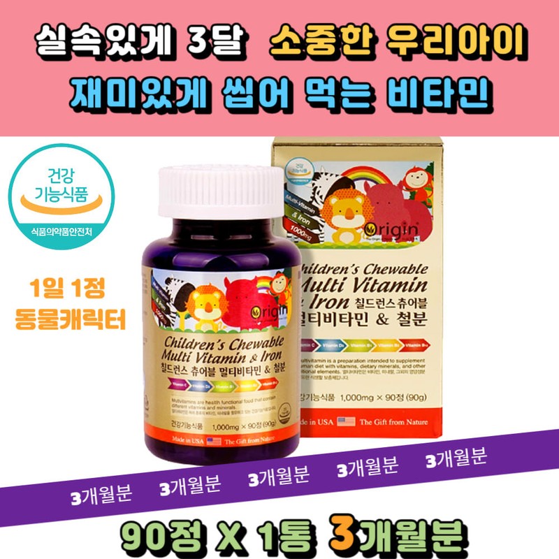 Money Otter Chewable Nutrients Children's Multivitamin Children's Nutrients 8 Types of Vitamins Niacin Folic Acid Iron Growing Children / 머니수달 씹어먹는영양제 칠드런스 어린이멀티비타민 어린이영양제 비타민8종 나이아신 엽산 철분 성장기어린