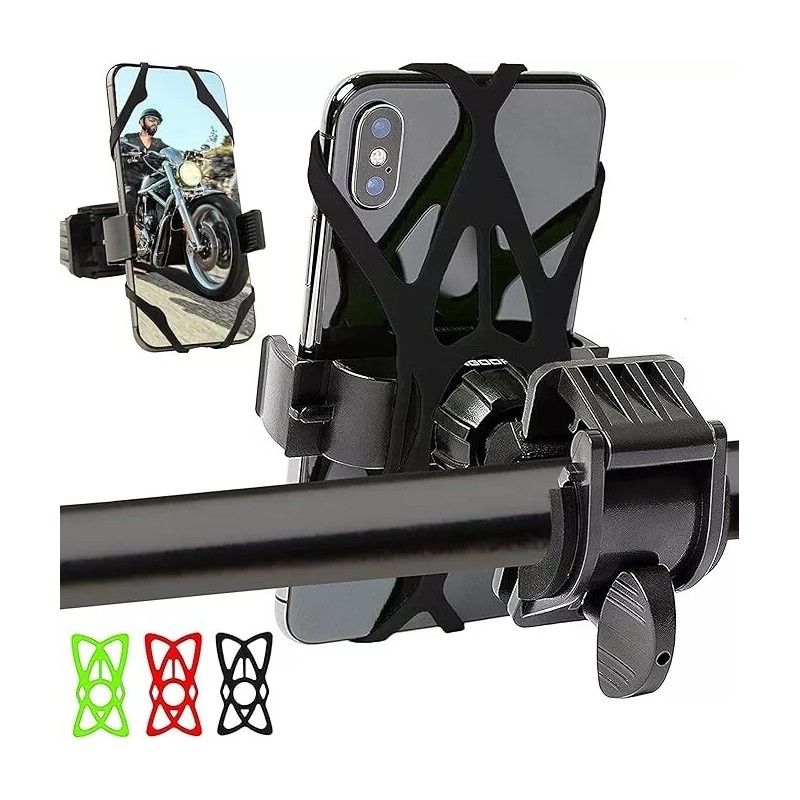 MONGOORA Bicycle & Motorbike PHONE HOLDER w 3 Color Bands - Flexible Mount