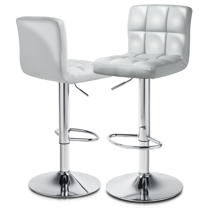 MoNiBloom Silver Barstool Set of 2, PU Leather Modern Seat Height Adjustable Bar Stool with Footrest and Metal Base for Pub Chair Kitchen Island Counter