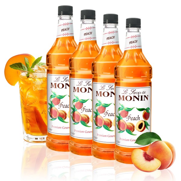 Monin - Peach Syrup, Fresh and Juicy Flavors, Great for Iced Teas, Lemonades, and Sodas, Non-GMO, Gluten-Free (1 Liter, 4-Pack)