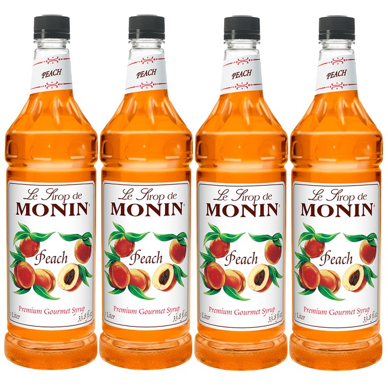 Monin Flavored Syrup, Peach, 33.8-Ounce Plastic Bottles (Pack of 4)
