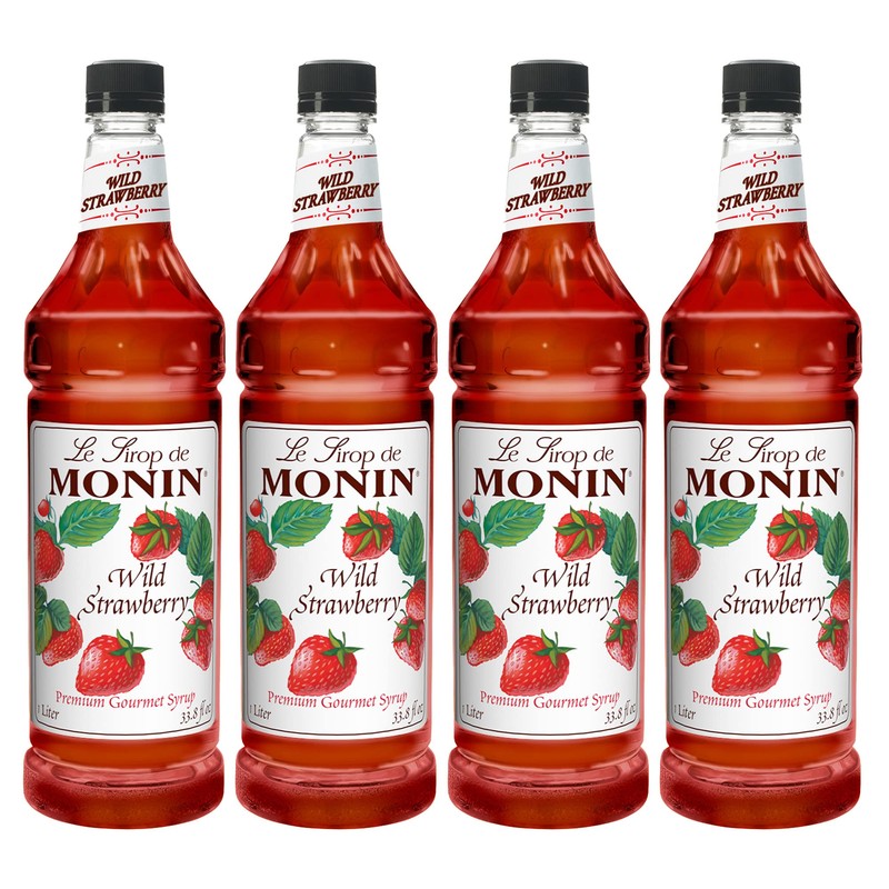 Monin Flavored Syrup, Wild Strawberry, 33.8-Ounce Plastic Bottle (Pack of 4)