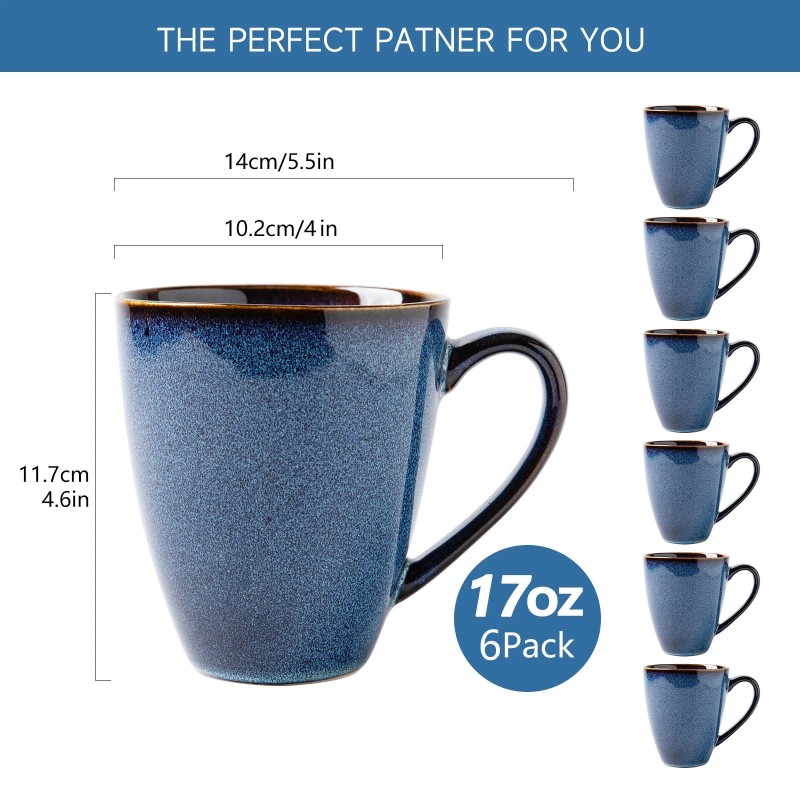 【LARGE SIZE & CONVENIENT SET】: With a capacity of 17 OZ, these mugs are the perfect size for everyday use at home or in the office. The set of 6 mugs is convenient for serving guests or for use throughout the day. These mugs are versatile and can be used for a variety of beverages such as coffee, tea, soup, milk, latte, cappuccinos, hot chocolate, cocoa, and more