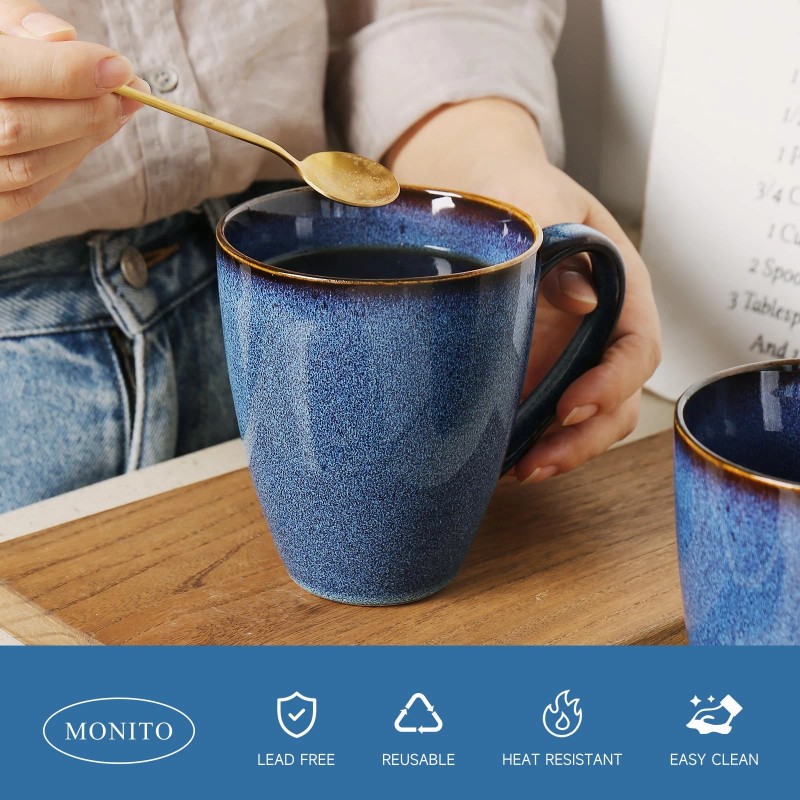 Monito 17 OZ Coffee Mugs Set of 6, Large Ceramic Blue Coffee Mugs Set with handle fo...