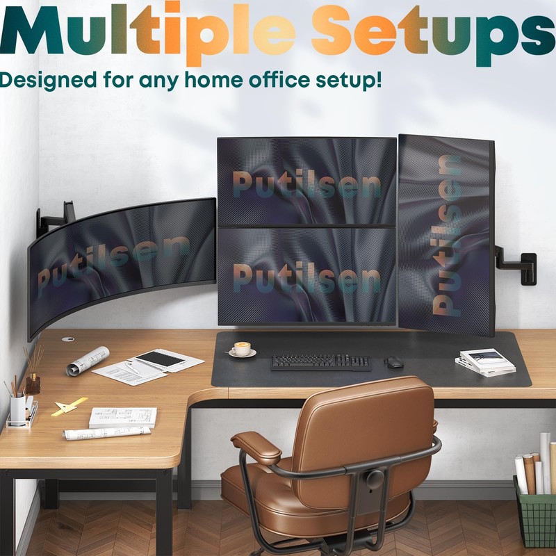 - Full Motion Adjustability & Ergonomic Comfort: Easily tilt, swivel, and rotate your monitor for optimal viewing. This adjustable wall-mounted monitor arm helps reduce neck strain, improve posture, and enhance productivity or gaming comfort—all while freeing up valuable desk space