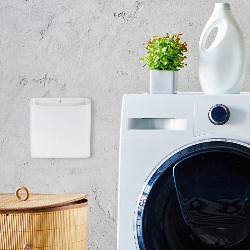 - [Laundry Room Organizer] Use our space-saving, eco-friendly lint bin instead of a regular hanging trash can on your laundry room floor or countertop. This lint trash can has a super strong magnetic back that can be attached to the side or front of your dryer or washing machine. Alternatively, it has a built-in keyhole, so you can mount it to the wall with screws. Of course, you can also put it on the countertop in the laundry room.