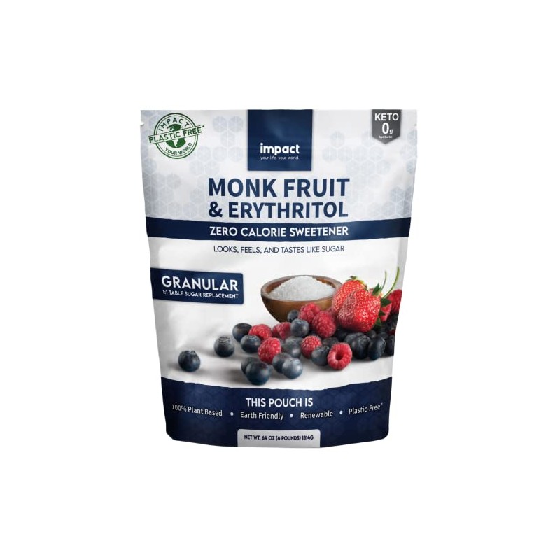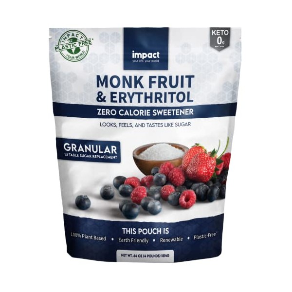 Monk Fruit Erythritol Sweetener, Zero Calorie Blend, Keto Friendly Sugar Substitute, Plastic Free Packaging (4lbs)