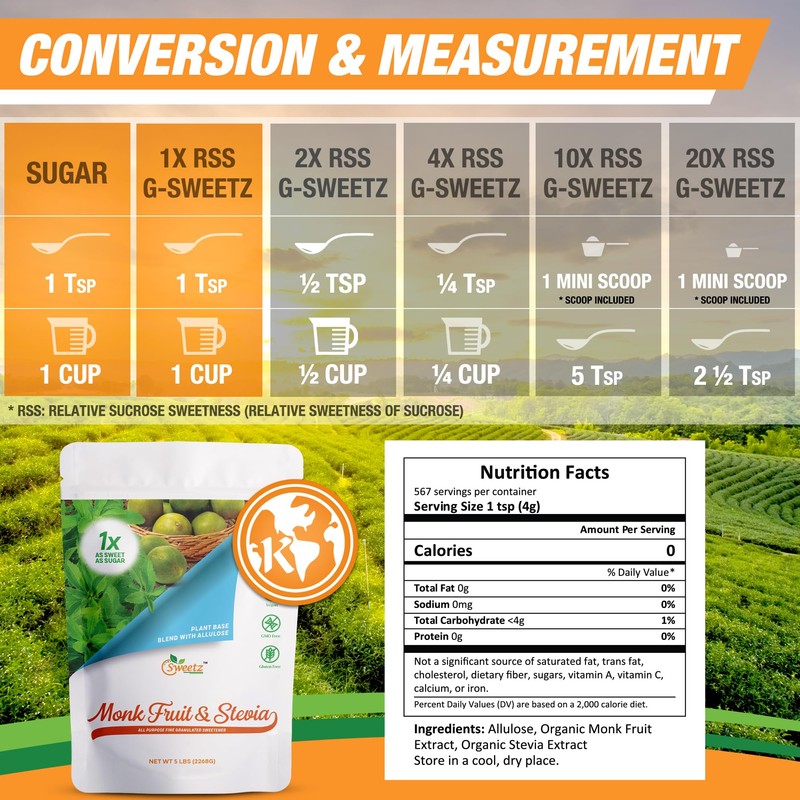 - 【INDULGE GUILT FREE】 G-Sweetz Monk Fruit, Stevia, and Allulose blending series surpasses traditional sugar and artificial sweeteners. Whether you're baking or sweetening your favorite beverage, enjoy the refreshing flavor without the guilt. Experience the "better and sweeter" taste your way.