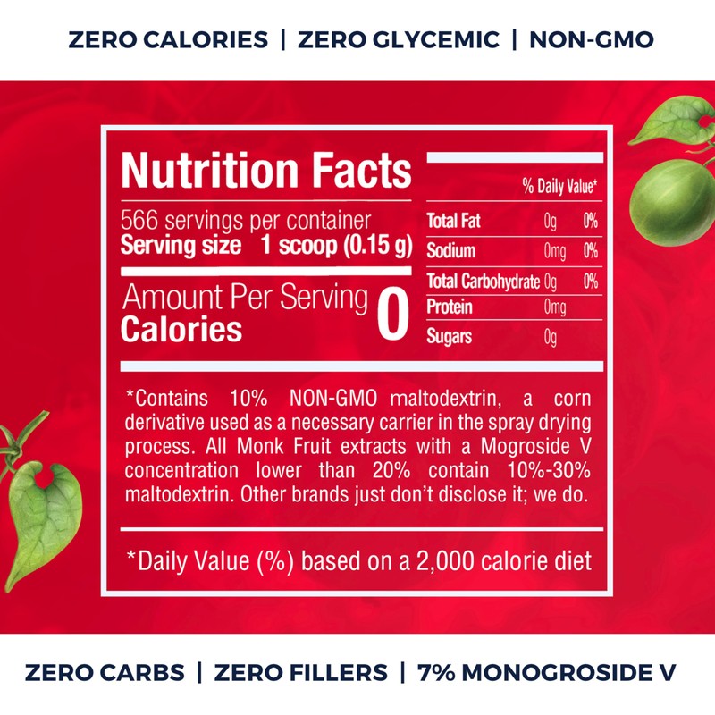 - 25X SWEETER THAN SUGAR: Our monk fruit extract is 25x times sweeter than sugar, making one mini scoop (0.15 grams) as sweet as a full teaspoon of sugar (4 grams).