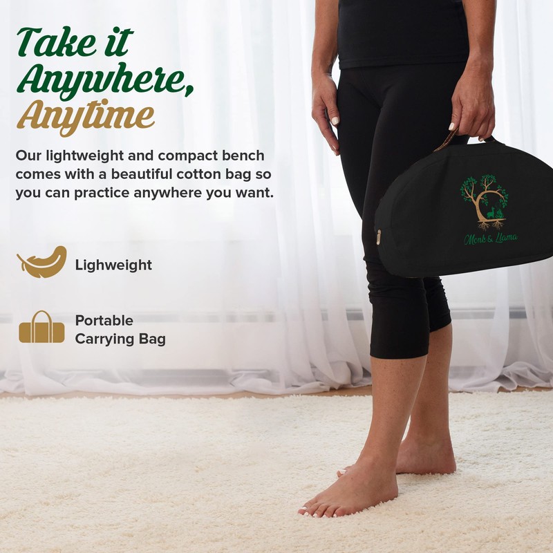 MONK & LLAMA Meditation Bench - Kneeling Bamboo Bench with Foldable Legs & Cushion — Perfect Kneeling Stool Ergonomic Bamboo Yoga Bench for Extended Practice - Includes Carrying Bag (Black)