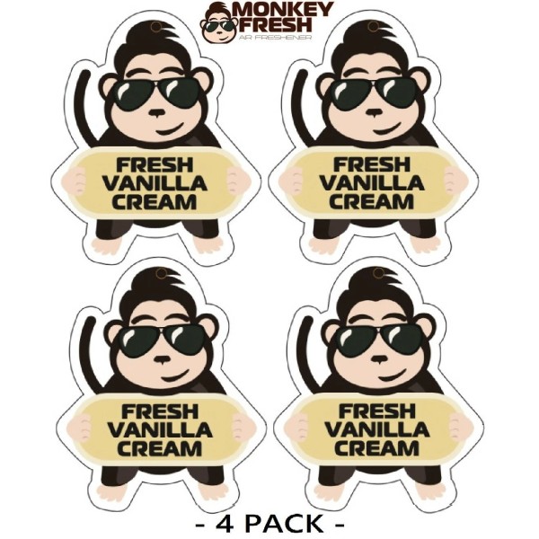 MONKEY FRESH 4 pc 4x Monkey Fresh Hanging Car Air Freshener Vanilla Scent