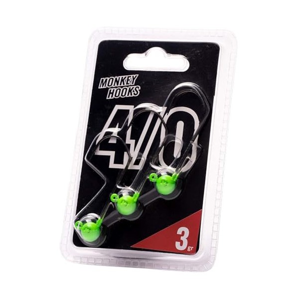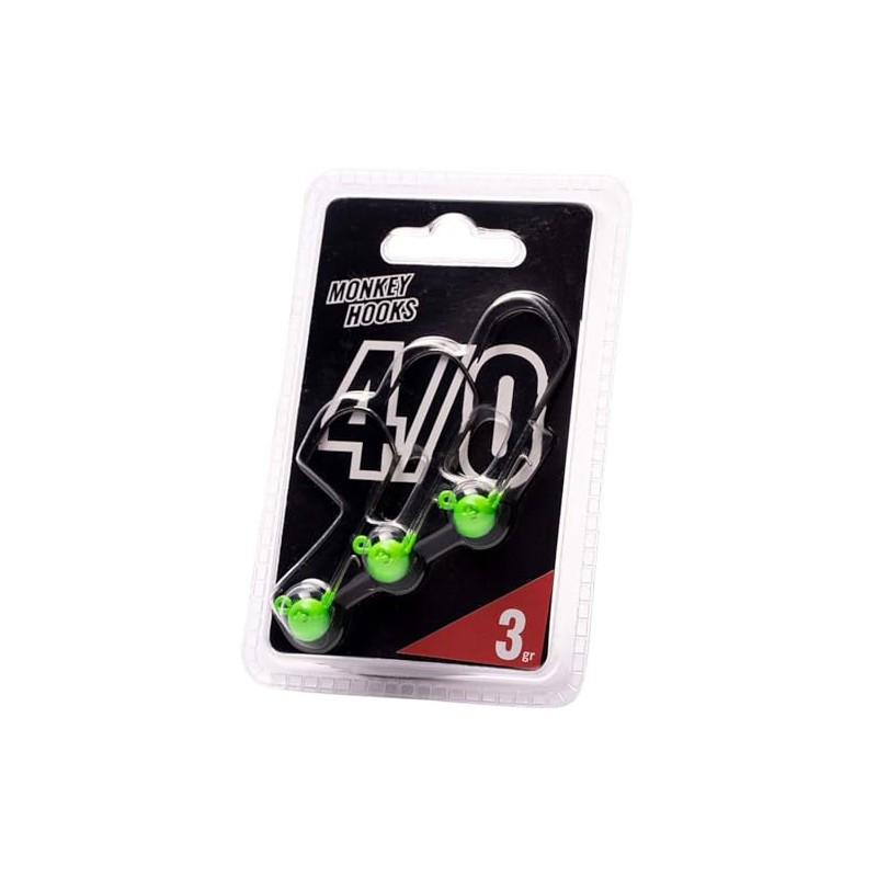 Monkey Lures Hook - 3 Jig Heads, Size/Weight/Colour: Size 4/0 / 3g / Green