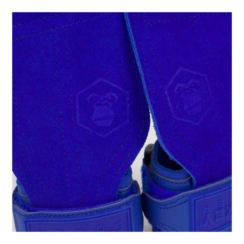 Monkey Power Straps con Callera de Piel Azules, Gym Crossfit Muñequera (M 18-23CM MUÑECA 13-17CM Palma)