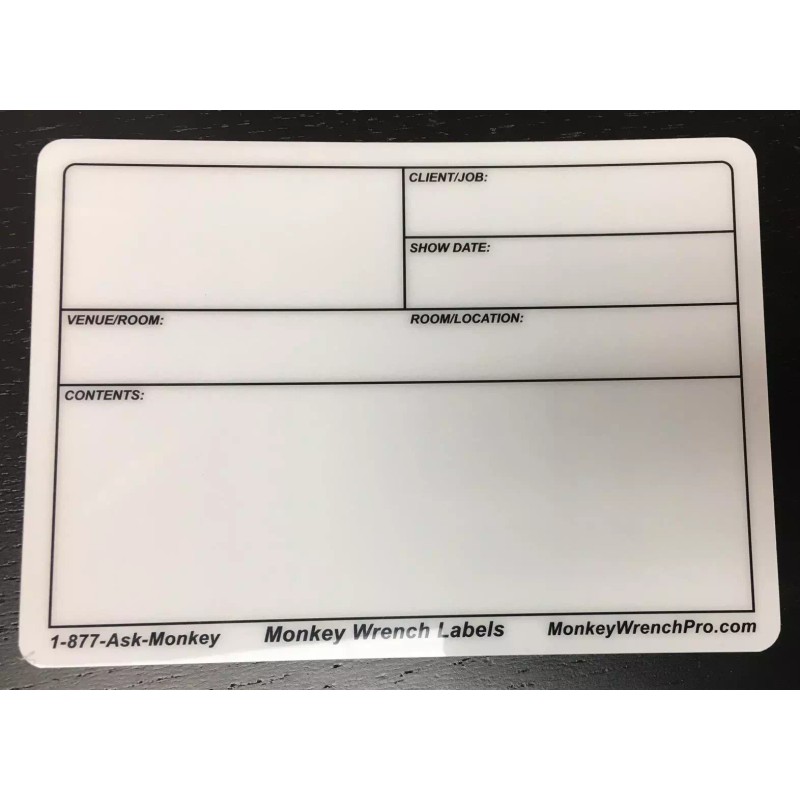 Rewritable road case labels are built to the highest standard to withstand the wide variety of conditions road cases experience. The ability to use a permanent marker on the labels ensures the information will not be lost in transit. Simply clean with isopropyl alcohol wipes or spray and the label is ready to reuse.