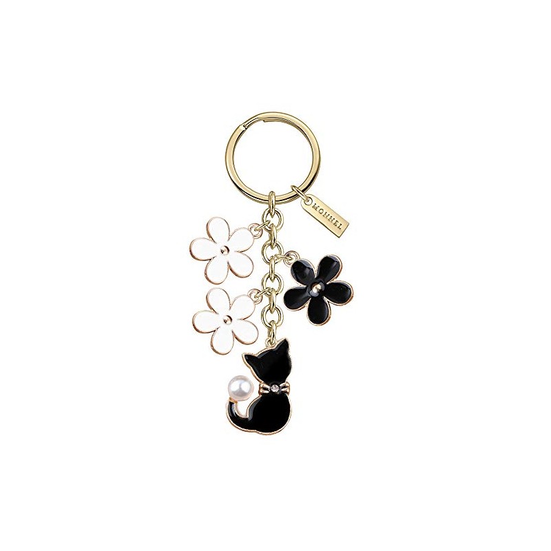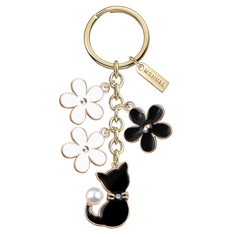 Monnel Z582-E Lily Flowers Black Cat Pet Charms Pendants Keyring Keychain with Velvet Bag for Women