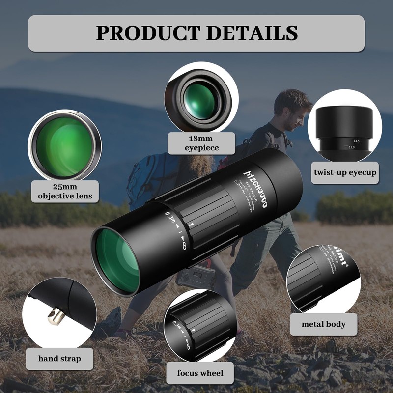 - POWERFUL MAGNIFICATION: 8x25 monocular telescope with high-definition optics delivers clear and bright images for bird watching and outdoor viewing