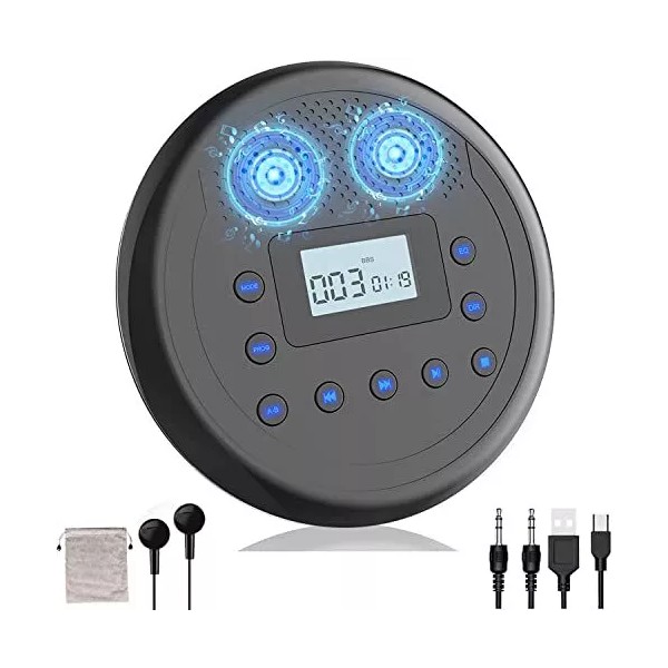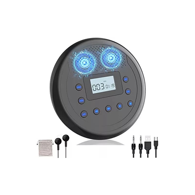 đăRechargeable and Anti-SkipăAdvanced anti-skip and anti-shock technology, no more worry about skip issue even while exercising or driving on bumpy roads. Built-in 1400 mAh rechargeable battery can support up to 15 hours of playback when fully charged. This portable cd player with headphones is very suitable for traveling and carrying when going out.