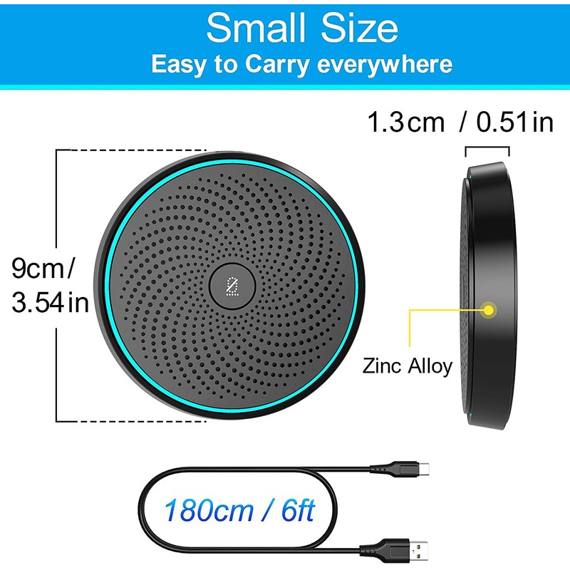 - 【Fast Mute & Portable Design】Conference microphone with mute button, quickly turn off the sound by pressing the mute button, which is very convenient for online meetings and distance learning. You can easily put it in your pocket or business bag to take it anywhere.