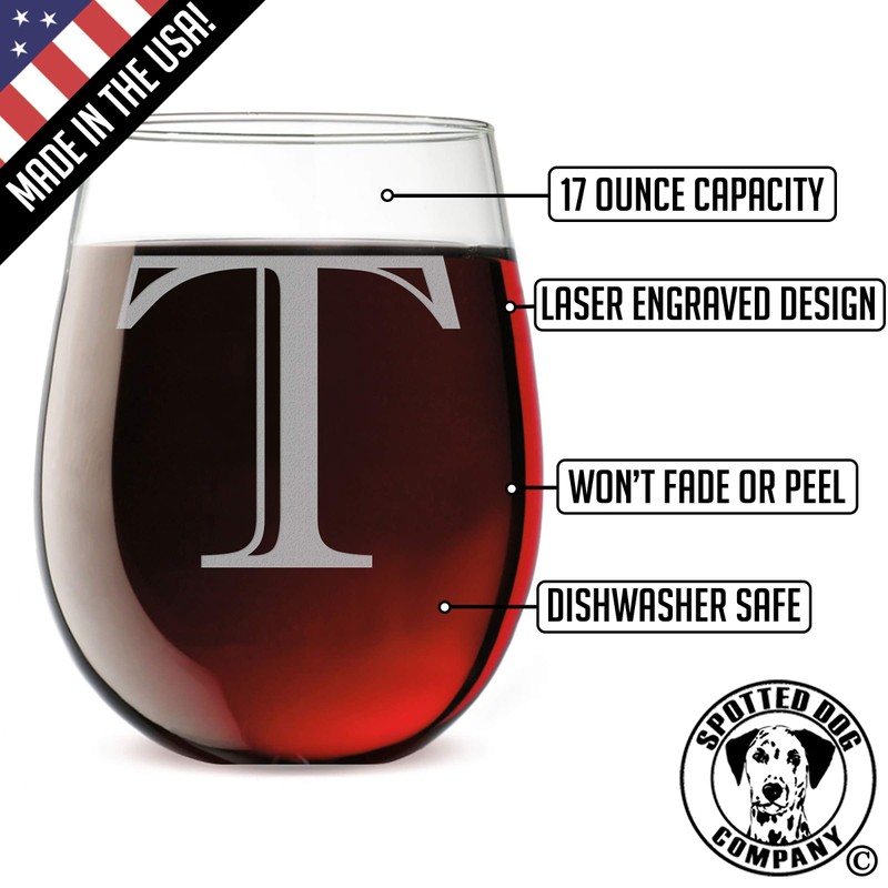 Monogram Etched 17oz Stemless Wine Glass (Letter T)