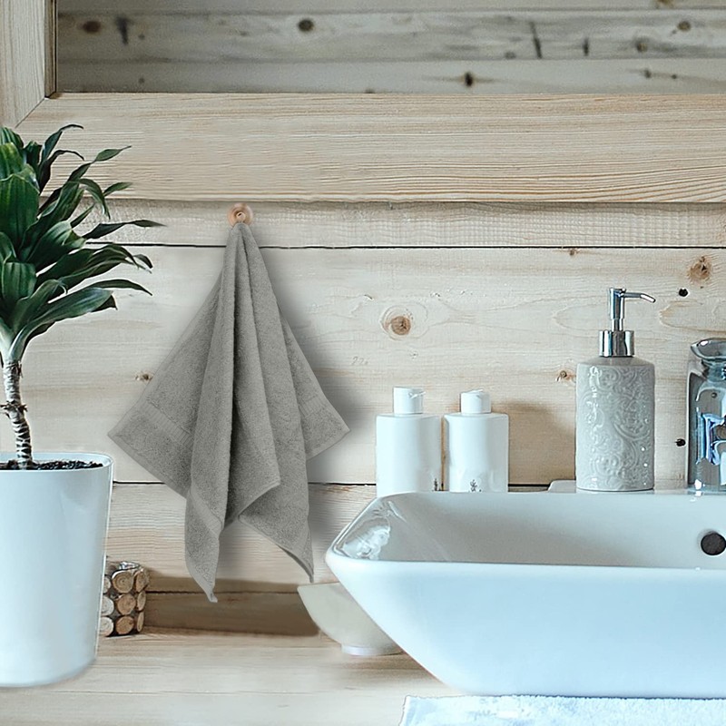 • Update the look of your bathroom with fresh towels. Dobby border adds an elegant look to your bathrooms decorative details. You can easily set the mood in the bathroom by matching towel color to overall design theme or color scheme in each bathroom.
