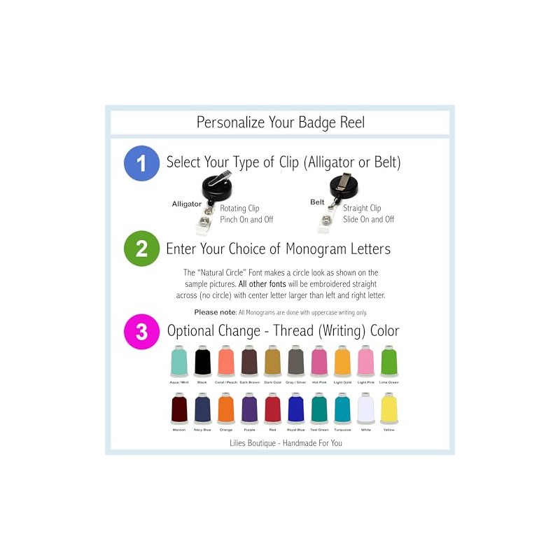 Monogrammed badge reels are a great way to add fun and function for anyone that wears a name tag or ID badge for work or identification. Find the one that matches your style!
