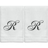 Monogrammed Towels Fingertip, Personalized Gift, 11 x 18 Inches - Set of 2- Black Embroidered Towel - Extra Absorbent 100% Cotton- Soft Velour Finish - For Bathroom/ Kitchen/ Spa- Initial R (White)
