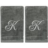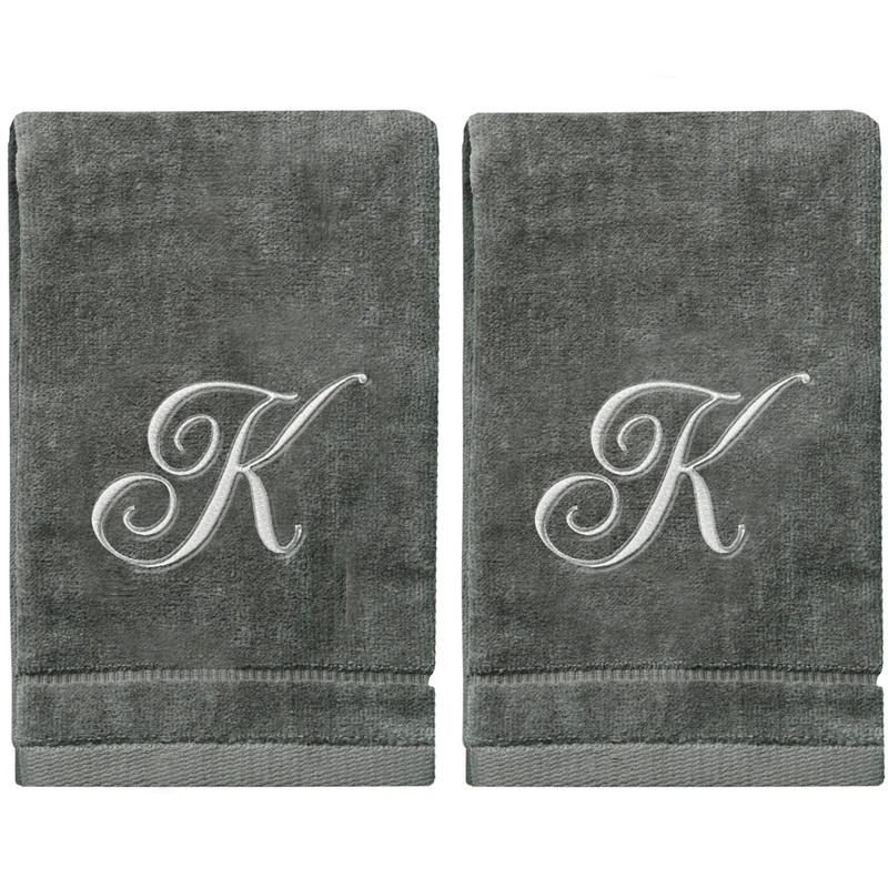 Monogrammed Towels Fingertip, Personalized Gift, 11 x 18 Inches - Set of 2- Silver Embroidered Towel - Extra Absorbent 100% Cotton- Soft Velour Finish - For Bathroom/ Kitchen/ Spa- Initial K (Gray)