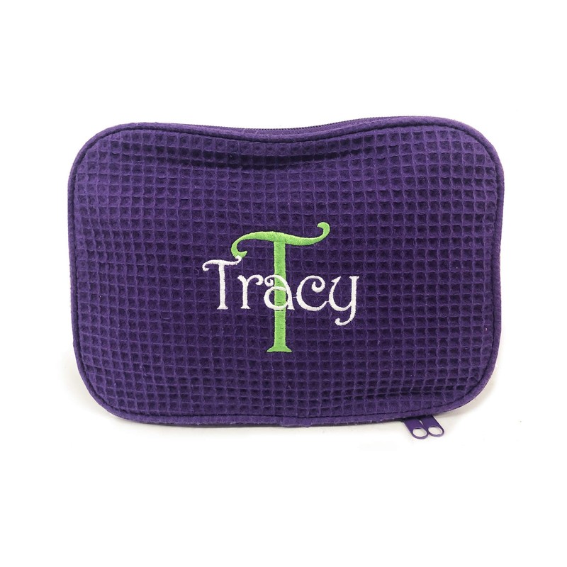 Monogrammed Waffle Cosmetic Bag with Name and Initial (Purple)